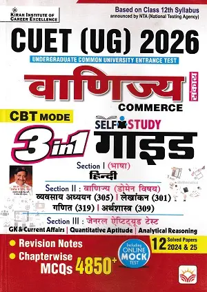 CUET (UG) 2026 की तैयारी करने वाले Commerce छात्रों के लिए Kiran Institute of Career Excellence की यह 3-in-1 Self Study Guide (English Medium) एक complete और exam-oriented पुस्तक है।