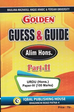Golden Guess & Guide Alim Hons. Part-II (Urdu Hons.) विशेष रूप से Maulana Mazharul Haque Arabic & Persian University तथा अन्य सम्बंधित पाठ्यक्रम के विद्यार्थियों के लिए तैयार की गई एक महत्वपूर्ण गाइड है। यह पुस्तक Urdu (Hons.) Part-2 की परीक्षा के लिए Guess और Guide दोनों को मिलाकर तैयार की गई है, जिससे छात्रों को परीक्षा पैटर्न समझने और उच्च अंक प्राप्त करने में सहायता मिलती है।