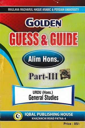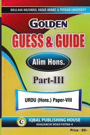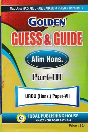 Golden Guess & Guide Alim Hons. Part-III (Urdu Hons.) विशेष रूप से Maulana Mazharul Haque Arabic & Persian University एवं अन्य विश्वविद्यालयों के पाठ्यक्रम को ध्यान में रखकर तैयार की गई एक महत्वपूर्ण पुस्तक है। यह किताब Urdu Hons. Part-3 के विद्यार्थियों के लिए Guess और Guide का संपूर्ण मिश्रण है, जो परीक्षा की तैयारी को आसान और प्रभावी बनाती है।