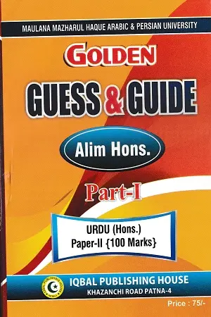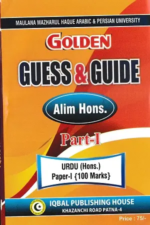 Golden Guess & Guide Alim Hons. Part-I  Urdu Hons. Maulana Mazharul Haque Arabic & Persian University के पाठ्यक्रम पर आधारित एक महत्वपूर्ण पुस्तक है। यह किताब विशेष रूप से Urdu (Hons.) Paper-I के विद्यार्थियों के लिए तैयार की गई है, जो परीक्षा की तैयारी को आसान और प्रभावी बनाती है।